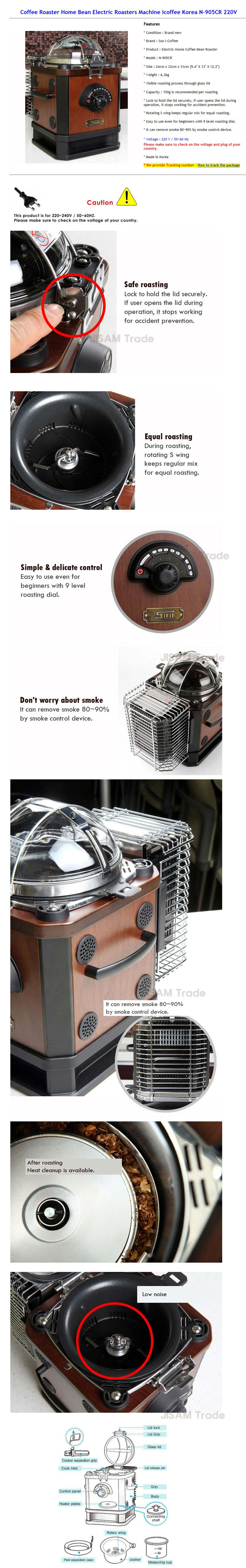 【iCOFFEE]コーヒーロースターホームビーン電気ロースターマシンは、N-905CR220V&独占英語クイックユーザーガイドをicoffee