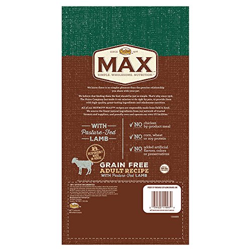 NUTRO MAX Grain Free Adult Recipe With Pasture Fed Lamb Dry Dog Food, (1) 25-lb. bag.; With Delicious Lamb Flavor, Rich in Nutrients and Full of Flavor