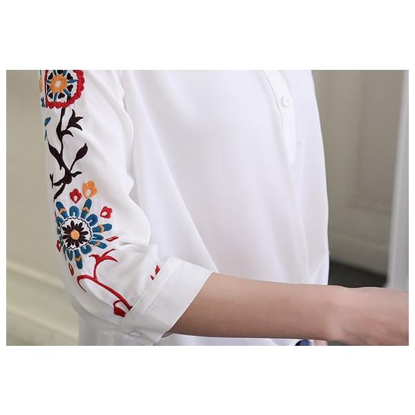 袖フラワー刺繍ブラウス レディース トップス シャツ 七分袖 花柄 2017 新作トレンドの袖刺繍でさりげないコーディネートのポイントに♪襟元をスッキリ見せてくれるシルエットが嬉しい、シャツブラウスです*幅広いスタイルに合わせやすく、1枚で夏スタイルの完成★【カラー】ホワイト【サイズ】[S]丈51/胸囲95/肩幅37/袖丈40(cm)[M]丈52.5/胸囲99/肩幅38/袖丈40.7(cm)[L]丈54/胸囲103/肩幅39/袖丈41.4(cm)※製品により多少の誤差が生じる場合がございます。【ご使用上の注意】着用に問題のない製法のほつれ、商品の性格上、開封された商品・一度でも着用されました商品の返品・交換は一切お受け致しません。イメージと違う、サイズが合わない等の理由での返品は一切受け付けておりません。購入後のサイズ交換は対応しておりません。生産終了後すぐ発送しているため匂いがある場合がございます。ご了承ください。【生産国】made in china※商品はご注文を頂いてから2週間前後の到着となります。
