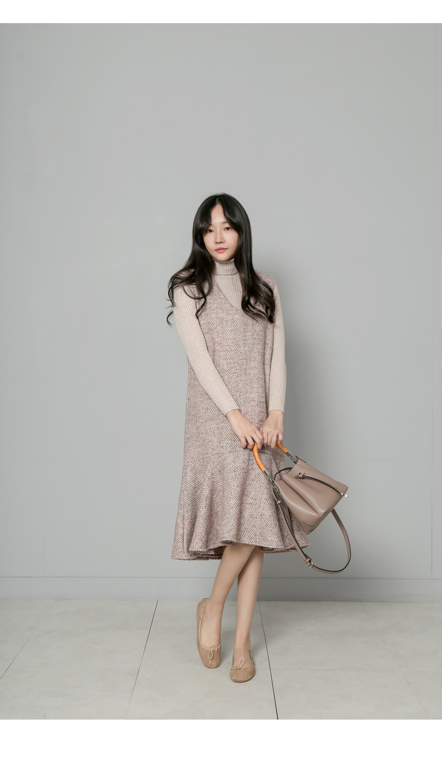 헤링본 울 브이 머메이드 민소매원피스색감이 예쁜 헤링본 울 머메이드