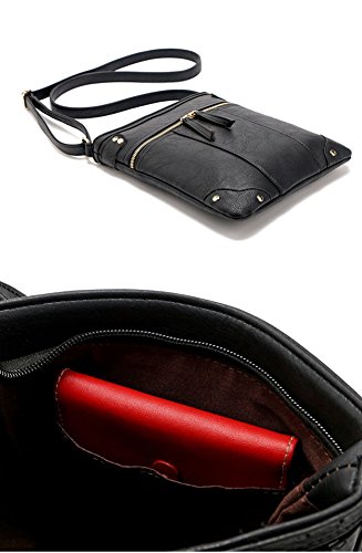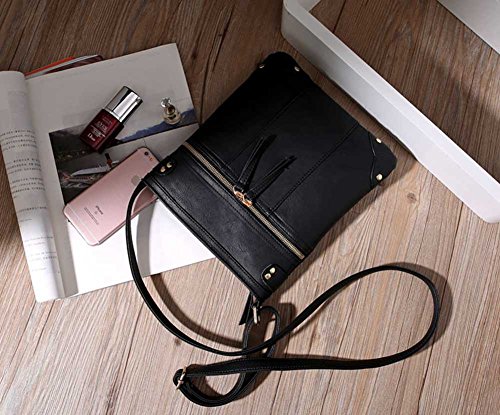 -. Feature : Dimensions: 9 x 10.1 x 0.9inch/23 x 26 x 2cm (L*H*W) / Closure: Zippered around,which designed for the safety of your properties / The length of the shoulder strap is 25.7-48.8 inch/66-125cm, strap adjustable according to the individual's height / Interior Structure: 1 main compartment,1 zipper pocket and 1 open pocket;Exterior:1 front pocket with two-way zippers / It can carry a lot of things such as wallet,phone,cosmetic bags,etc,ideal for everyday used.