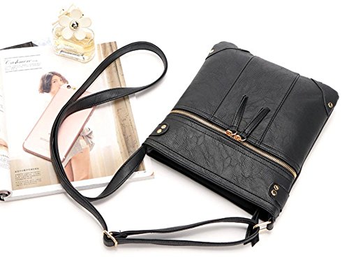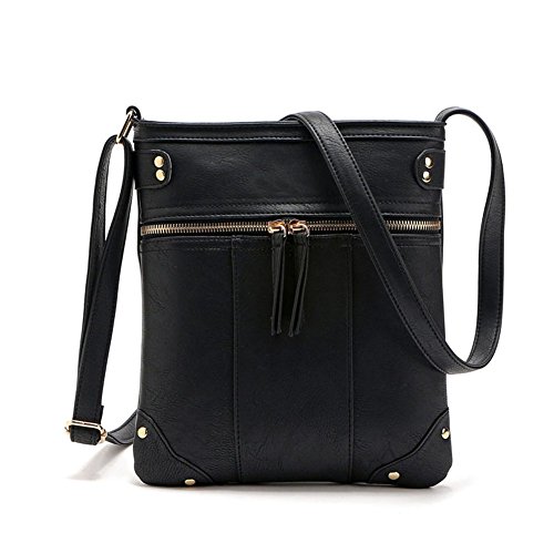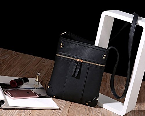 -. Title : Badiya Vegan Double Zipper Crossbody Bag Shoulder Messenger Purse