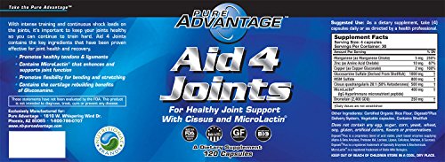 ReleaseDate : 2015-06-22 Studio : Pure Advantage Publisher : Pure Advantage Binding : Health and Beauty Product Description New and improved formula, Pure Advantage Aid-4-Joints now contains cissus and microlactin. Our premium joint rebuilding formula promotes healthy ligaments and tendons making it the preferred choice over regular joint formulas. With any intense training and shock loads to your joints, it is important to keep your joints healthy so you can continue to train hard. Most people take their joints for granted and do not realize the impact running, lifting or any kind of physical activity has on joints and other connective tissue. Aid 4 Joints Premium Joint Formula contains 6 key ingredients that have been proven effective for joint health. Here at Nutritional Brands our formulas are never static. As a new and proven scientific evidence comes to light, we carefully review our formulas to ensure we continue to offer you the most effective products with maximum bio-availability. For your health does not contain egg, sugar, corn, yeast, wheat, soy, gluten, artificial colors flavors or preservatives. Some of the important benefits of Aid 4 Joints are promoting healthy tendons and ligaments, enhancing and supporting joint function, promoting flexibility for bending and stretching, and cartilage rebuilding from glucosamine. 0