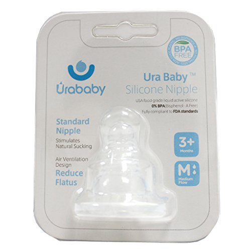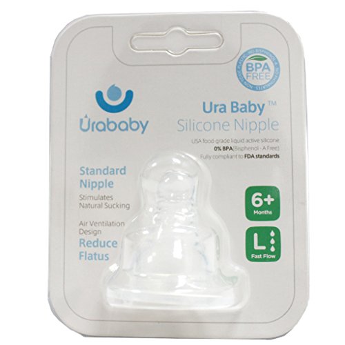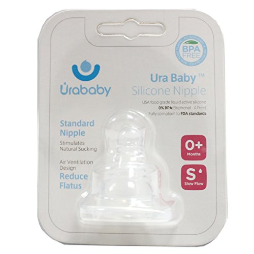 -. Binding : Baby Product -. Brand : Ura Baby -. Feature : 100% food- grade silicone.Fully complaint to FDA standards. / Slow Flow/Medium Flow/Fast Flow Nipples are ideal for babies 0+/3+/6+ months. / Naturally shaped nipple makes it easier to transition from breast and bottle feeding. / Anti-vacuum valve controls air flow while feeding thus reducing air ingestion and painful gas. / Durable silicone is odorless and easy to sterilize. -. Label : Ura Baby -. Manufacturer : Ura Baby -. MPN : N0012 -. PackageQuantity : 1 -. PartNumber : N0012 -. ProductGroup : Baby Product -. ProductTypeName : BABY_PRODUCT -. Publisher : Ura Baby -. Studio : Ura Baby -. Title : Ura Baby BPA Free Replacement Silicone Nipple,2 Count