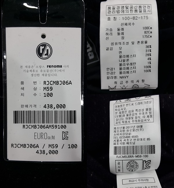 모 36% 면 31% 폴리에스터 28% 나일론 4% 폴리우레탄 1%