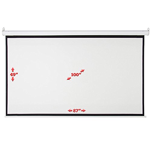 Specifications: 1. Optical Technology: 1 2. Operation Type: Automatic with Switch or Remote 3. Screen Fabric Color: Matte White 4. Viewing Area (W x H): 87" x 49" 5. Diagonal: 100" 6. Material: Steel PVC Fabric 7. Aspect Ratio: 16:9 8. Gain: 1:3 9. Viewing Angle: 160 Degrees 10. Folding Dimensions: (87.01 x 5.12 x 1.97)" / (221 x 13 x 5)cm (L x W x H) 11. Weight: 285.72oz / 8100g 12. Remote Control Requires: 1 x 23A 12V Battery(Included) 13. Suitable for: Home Theater Movies, Classroom Training, Conference Room Presentations, Public Display, Etc