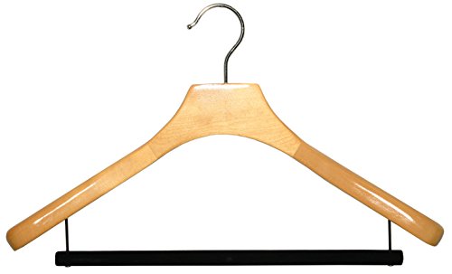 -. Title : Deluxe Wooden Suit Hanger, Black Velvet Bar with Natural Finish, Box of 24 by The Great American Hanger Company
