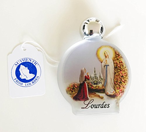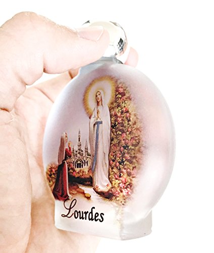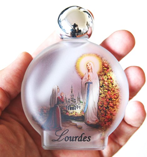 Lourdes Holy Water in round Frosted Glass Bottle with Authentic Lourdes Water from the Grotto - Large Size, 54 ml(1.9 Ounce)