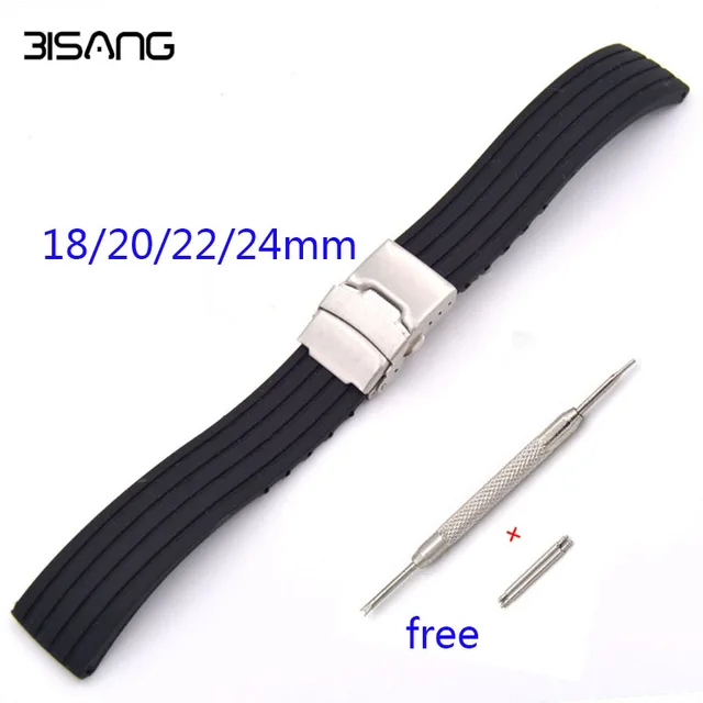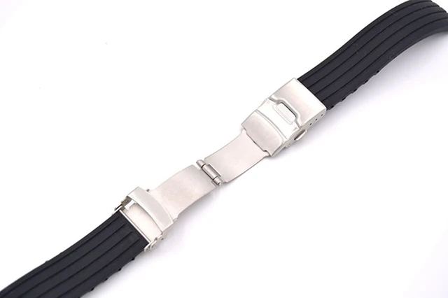 | [해외] 블랙 스포츠 방수 접이식 버클 스트랩 스트라이프 18/20/22/24 미리메터 부드러운 실리콘 고무 손목 시계 casio watch 액세서리 |