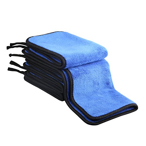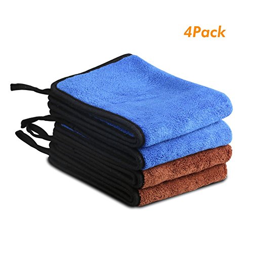 Microfiber Cleaning Car Towel,4 Pack 2 Color 12x16 inch Double Composite Ultra-Thick Plush Wipe Car Wash Drying Cloth(4Pack(2blue,2brown))