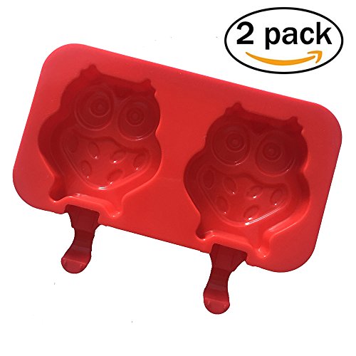Always Your Chef Silicone 2-Cavity Pop Molds Owl Shaped Ice Cream Maker Jello Molds, Pack of 2
