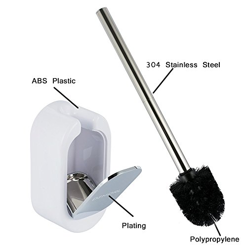 High Quality and Durable Materials: The toilet brush holder is made of durable ABS plastic and Electroplating. The brush is made of soft hair with a stainless steel handle. Not easy to damage