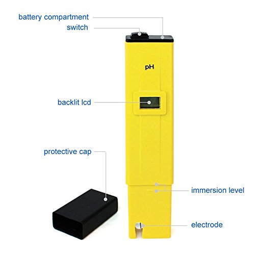 LSHCX Mini 0.1pH Resolution pH Meter / pH Pen Tester / Water Quality Tester with Backlight LCD for Household Drinking Water, Aquariums, Pools, PH 0-14.0 Measuring Range