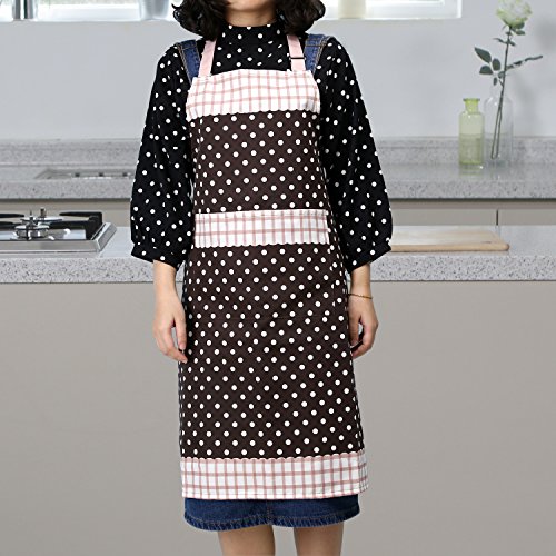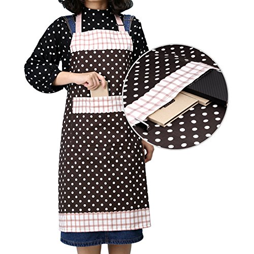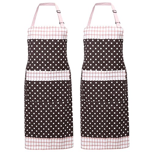 Nuovoware Aprons, [2PACK] Fashionable Unisex Chef Kitchen Apron with Adjustable Neck Strap and Spacious Pocket, Perfect for Cooking, Baking and Housework, Machine Washable, Coffee & White Dots