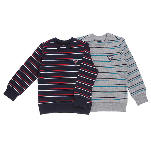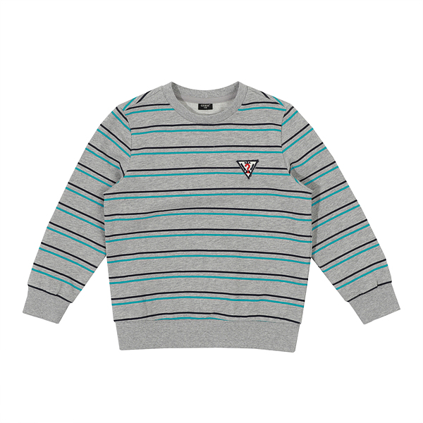 컬러 S/T MTM(남아) - 멜란그레이, 네이비 두가지 컬러로 구성된 맨투맨입니다. - 산뜻한 배색의 스트라이프 컬러가 돋보이는 맨투맨입니다. - 가슴에 게스 오리지널 삼각 자수로 포인트되어 있습니다. - 미니쮸리 원단을 사용하여 봄에 착용하기 좋습니다. - 베이직한 아이템으로 다양한 하의와 매칭하기 용이합니다.