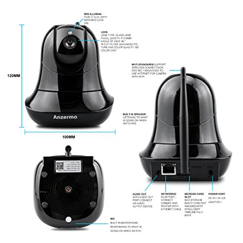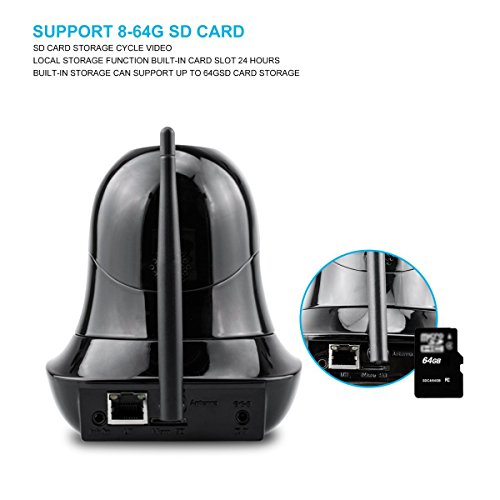Two way-Audio: You can hear what's going on in the room you're monitoring, and through our mobile app, you can speak directly to anyone in your room. This feature lets you use the ANZERMO as a security camera at your front door, trained on your valuables, or to monitor your child, pets or playroom. 64G external Micro-SD card with FAT32 format can allow you easily to look back the video while you are not at home.