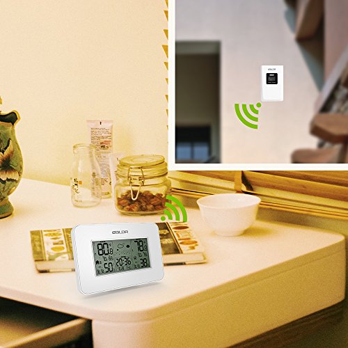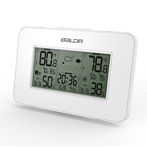-. Title : BALDR Weather Station Clock Indoor Outdoor Temperature Humidity Display Weather Forecast Alarm Snooze Calendar Blue Backlight