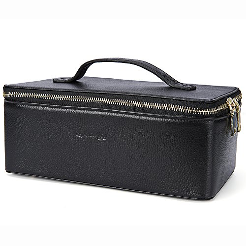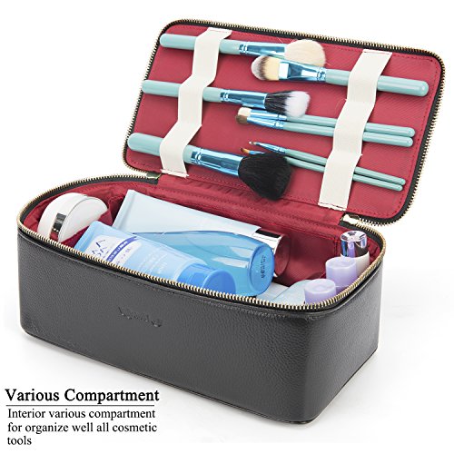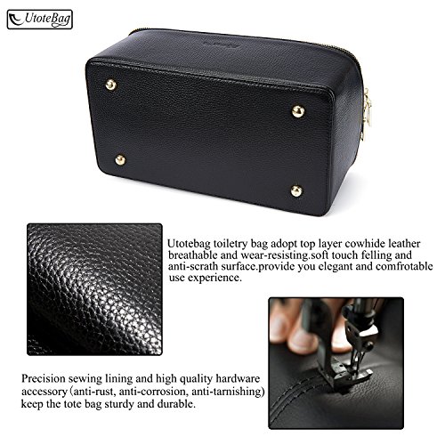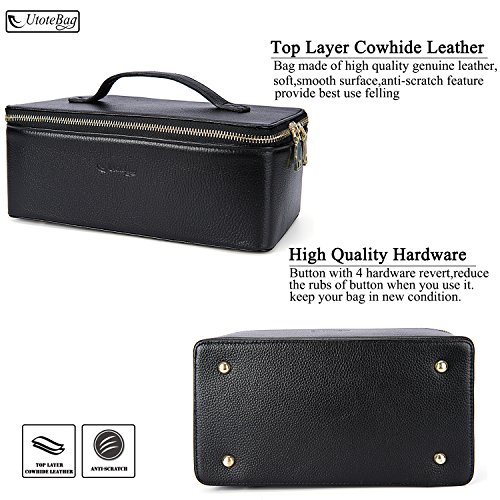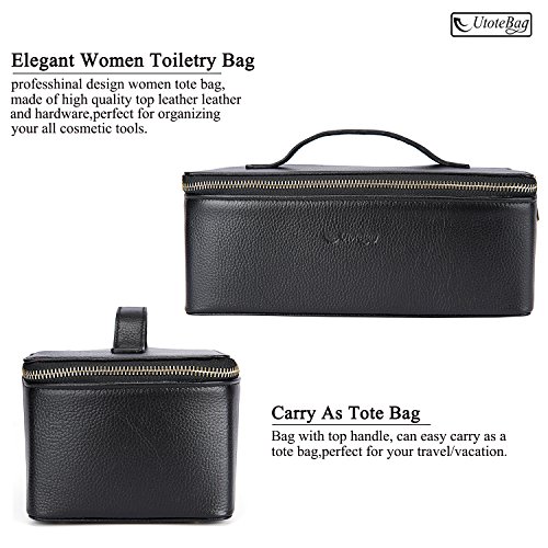 Utotebag Toiletry Bag / Cosmetic Case / Makeup Bag / Genuine Leather Portable Travel Organizer Bag Artist Storage Bag for Women (Black)