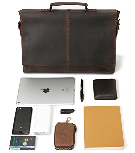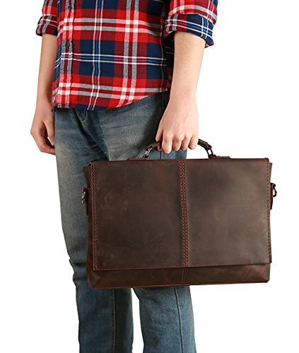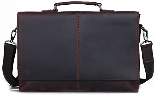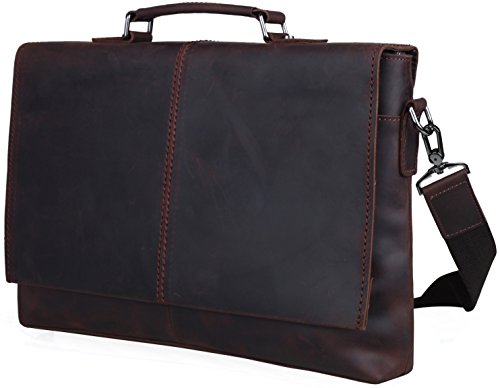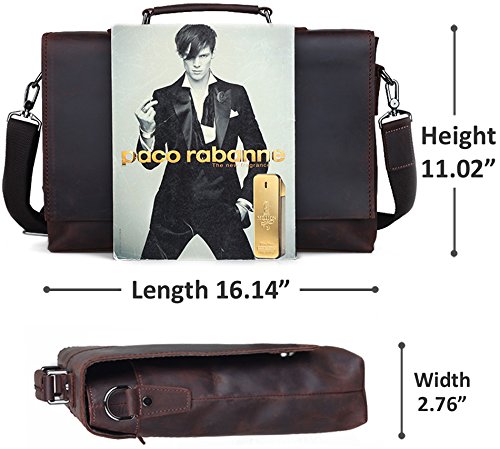 -. Feature : Best Material: Thick and durable crazy horse cow leather, which is made of top layer leather. Tarnish color hardware are all made of quality stainless steel. / Sections help organize your stuffs: Main compartment, 1 laptop section, 1 phone slot and 1 card slot inside the bag. We also designed a zipped pocket on rare for you. It will be convenient to keep small stuffs there. / AdE.q.u.a.t.e Capacity: Interior main compartment can fit your 14" laptop well, and also iPad, chargers, some documents, magazines, etc. Laptop section is perfect for your 13.3" Macbook. / Other Features: 1. Flat design flap-over. 2. Convenient magnetic snap buttons. 3. Come with detachable and adjustable long shoulder strap (37.40 ~59.44 inches). Easy to change the way of wearing. / Size infomation: (L) 16.14 x (H) 11.02 x (W) 2.76 inches. Neat weight is about 3.3 lbs. [Please pay attention to the weight before purchasing].