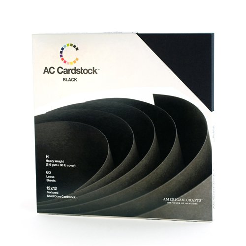12 x 12-inch Black AC Cardstock Pack by American Crafts | Includes 60 sheets of heavy weight, textured black cardstock