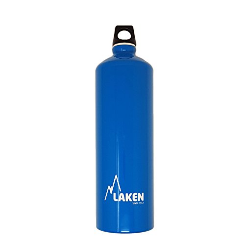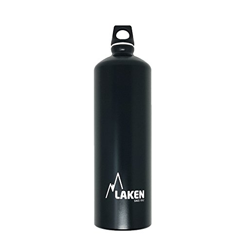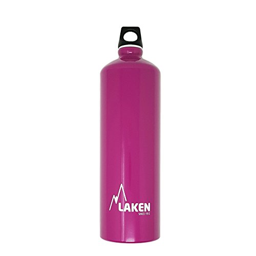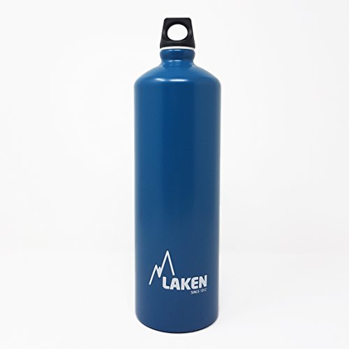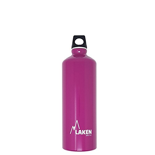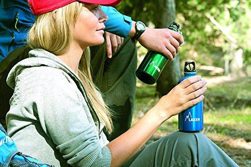 Your perfect everyday water bottle that will last for years. This is Laken Futura water bottle with a narrow neck for added drinking comfort. The Futura water bottle exterior is powder coated over a brushed aluminum surface for an attractive look and comfortable grip. The Futura top is a screw cap with a loop for easy carrying. This great water bottle has an interior polyamide based lining and it is completely BPA free, 100% recyclable and reusable. You can find the Laken Futura water bottle at 4 sizes, 20, 25, 34 and 50 ounces (600, 750, 1000 and 1500 ml) and at variety of solid colors and designs.Feature