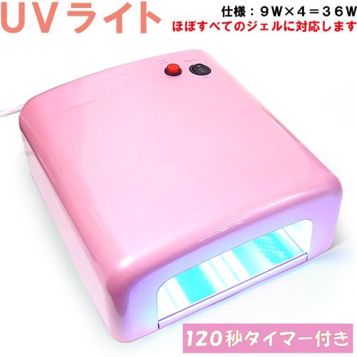 원본상품명: ジェルネイル用UVライト36W(電球9W×4本付き)UVランプ【ピンク】