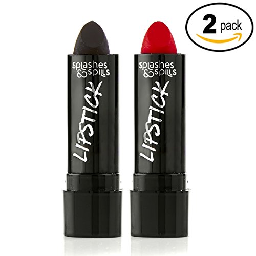 Vivid Black and Red Lipstick - 2 Pack Combo - Bold, Translucent, No Sheen Lip Color With Matte Finish - Makeup and Cosmetics by Splashes & Spills