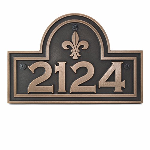 -. Title : Fleur De Lis Arch Address Plaque - 5x10 - Raised Bronze Metal Coated Sign