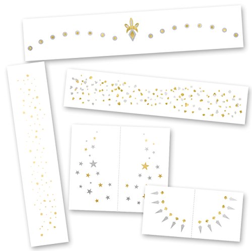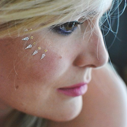 FLASHY FACES VARIETY SET of 25 assorted boho-inspired premium waterproof metallic gold & silver jewelry temporary foil face Flash Tattoos, face sparkle, face glitter, metallic tattoo