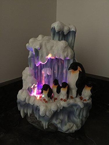 SINTECHNO SNF12076-2 Artistic Sculptural Penguin Family on Iceberg Tabletop Water Fountain