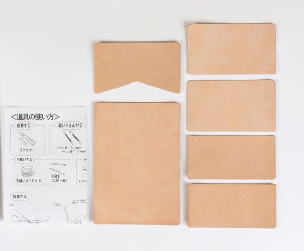 別売の【レザーハンドソーイングセット ライト】もしくは【シンプルレザースタイル道具セット】をお使い頂くと製作がスムーズに進みます。