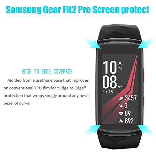-. Feature : *Compatibly: Specifically designed for Samsung Fit 2 pro Screen Protector. / *The Thickest Protector: Only 0.125mm thickness of this Samsung fit2 pro screen protector offer highly-responsive user experience. / *No Scratches: With scratch-resistant film, it can protect against accidental drop, scratches, dirt and dust, no influence on the touch-screen accuracy. / *Particular Design: Screen protector is made of premium PET material makes it easy to cover the full screen including the curved edges. Fit for Samsung Fit 2 pro only, will not fit for other watches. / *Easy to install: Unique silicone adhesive layer ensures a hassle and bubble-free installation. Comparing with traditional PET and Ballistic Tempered Glass protective covers The wet-install process allows for adjustments during the installation for better results.
