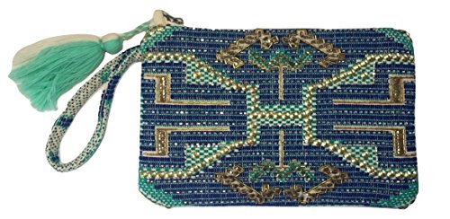 -. Title : Hand beaded embroidered clutch wristlet with tassel