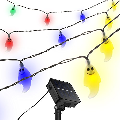 -. Title : Ghost Led String Light, Maan Halloween Decorations Lamp,30 LED Solar Powered Steady/Flickering Light Sensor Waterproof Outdoor Lights for Holiday Party Patio Decor,(19.7ft,Multicolor)