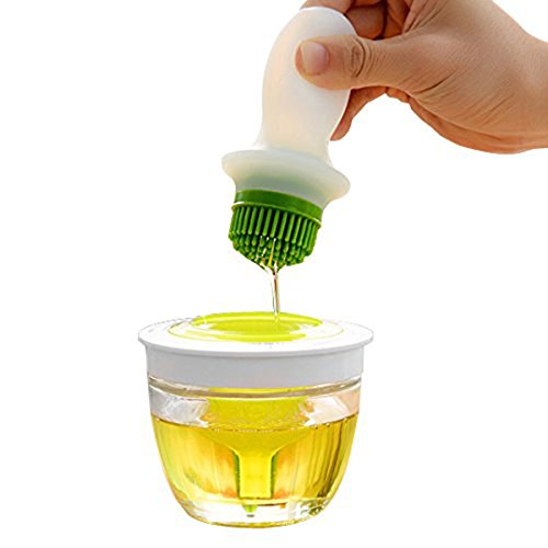 Product Description High quality heat resistant silicone and non stick brush formed in tiers can bear temperature range of -40 to 280C and has no side effect to human body Heavy duty glass jar bottom with a twist open top can hold up to 11 oz / 320 ml oil and allows brush to fits easily into bowl and cradle top, reducing spillage Squeeze handle brush picks up oil mixture and releases on desired surface when squeezed Product diameter of 10cm and height 15cm with weight 440g store safely and easily in fridge when filled 0