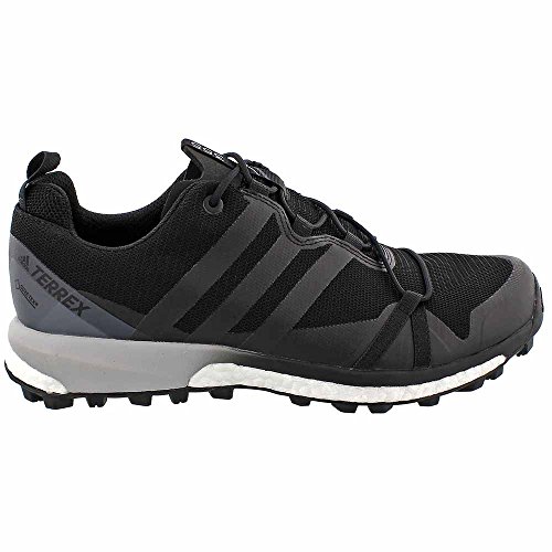 Studio : Adidas Outdoor Publisher : Adidas Outdoor Binding : Shoes Product Description If you wanted to run flat, easy trails then you'd go to the park and run those smooth gravel paths, but you'd rather run in the mountains where the trails are steep, technical, and demand an aggressive shoe like the Adidas Men's Terrex Agravic GTX Shoe. Designed with high-intensity, technical trails in mind, the Agravic has an aggressive Continental rubber sole with a tread pattern cribbed from mountain bike tires. A cushy layer of EVA protects against the rocks and logs you'll encounter out on your run, while Adidas' Boost technology helps keep some extra bounce in your step during those high-mileage leg grinders. The Agravic's upper was built to put the handle on rugged terrain thanks to a combination of textile fabric and welded overlays to help add support. And since trails are rarely perfectly dry and there's almost always a chance of rain, Adidas gave the Agravic a Gore-Tex membrane to keep your feet and socks dry when you inevitably encounter moisture out there. 0