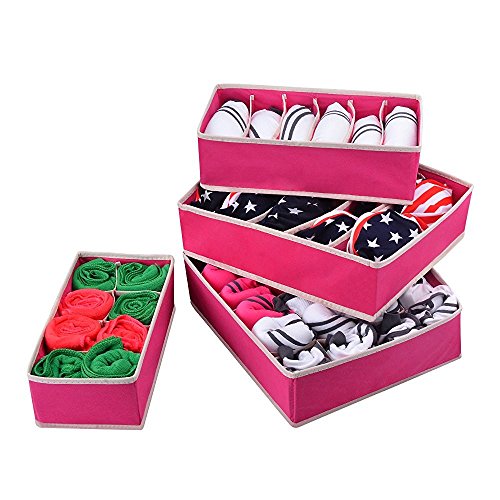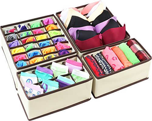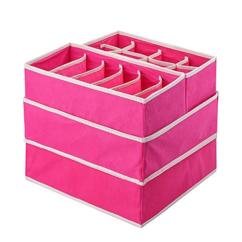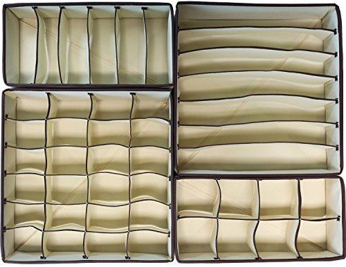 -. Feature : 6.3"x13.0"x3.5"inches/6 cells, 5.9"x11.4"x3.5"inches/8 cells, 11.8"x13.0"x3.5"inches/7 cells, 12.2"*13.0"*3.5"inches/24cells / There are 4 sets of these boxes, 6 cell one for underwear, 8 cell one for socks, 24 cell one for scarves, accessories, another big 7 cell one for bras / Great for organizing lingerie, underwear, underpant, bra, socks, scarf, ties / The whole boxes are made of non-woven fabric, which is moth-proof, mould-proof, moisture-proof, and very durable / The edge layer is removable, you could install and remove the edge pieces easily