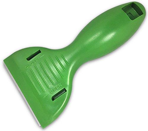 - Feature : Safely removes burnt on marks and debris from a glasstop stove surface. / Extra wide blade for faster cleaning / Ergonomic handle is comfortable and easy to use. / Easy snap open for blade replacement / Perfect to pair with a Peachy Clean Cooktop Scrubber
