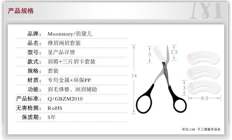 萌黛儿修眉画眉套装 修眉剪刀带眉梳+3片眉卡