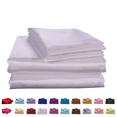 -. Feature : Top Quality Satin Solid Color Fitted Sheet Set,Includes 1Flat Sheet, 1Fitted Sheet, 2Pillowcases / Stronger Than Cotton: With their ultra-tight knit, these luxury sheets won't rip or tear after washing. More durable and breathable than cotton, they resist stains, fading, wrinkles & dust mites / Synthetic Silk - it is environmental, looks as bright and shining as real silk,feels as smooth and super soft as real silk,but is is much cheaper than real silk,high cost performance / TWIN SIZE: 1 Flat Sheet(66x96 Inch), 1 Fitted Sheet(39x75 Inch), 2 Pillowcases(20x30 Inch). FULL SIZE: 1 Flat Sheet(81x96 Inch), 1 Fitted Sheet(54x75 Inch), 2 Pillowcases(20x30 Inch). QUEEN SIZE: 1 Flat Sheet(92x102 Inch), 1 Fitted Sheet(60x80 Inch), 2 Pillowcases(20x30 Inch). KING SIZE: 1 Flat Sheet(102x105 Inch), 1 Fitted Sheet(78x80 Inch), 2 Pillowcases(20x40 Inch). CALIFORNIA KING SIZE: 1 Flat Sheet(102x108 Inch), 1 Fitted Sheet(72x84 Inch), 2 Pillowcases(20x40 Inch) / Machine washable,gentle circle,no bleach and low iron