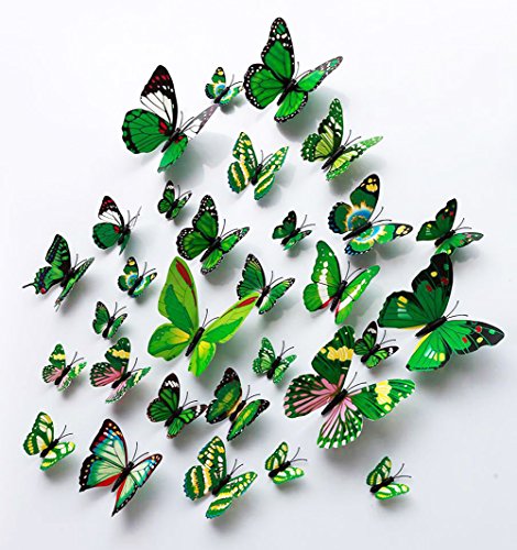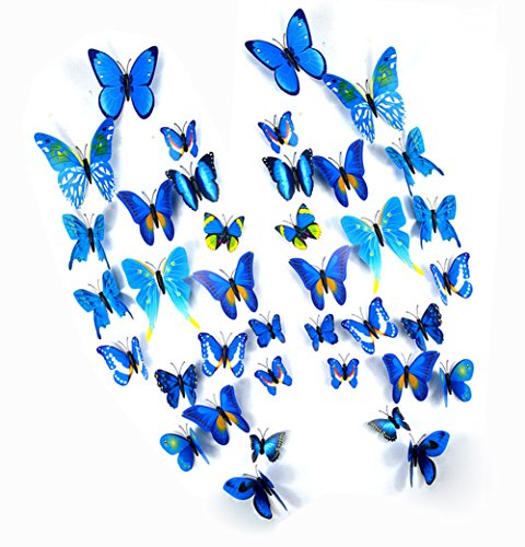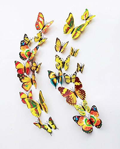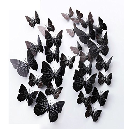 -. Feature : Vivid butterfly stickers set: 24 pieces artificial butterfly stickers with 4 kinds of sizes,looks likes real butterfly. / Good decoration gadgets: they can be applied to decor a theme party, butterfly museum embellishment, children room, garden parties, photography background, Christmas, wedding, birthday, etc. / Good handicraft works: each one is unique and beautiful, designed with adhesive sticker to help attach to the wall; With magnet in each butterfly's abdomen as well,easily removed and will not damage walls. / Use for a long time: butterfly wall decals is made of PVC material, durable, anti-dust, high-quality , waterproof, it can keep 3-6 years! / A great gift to families and friends