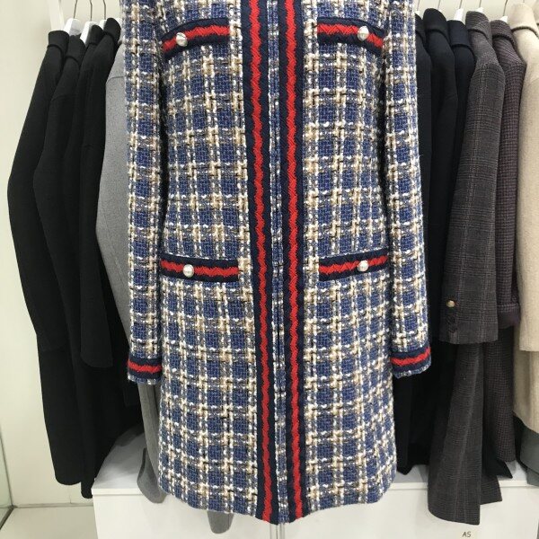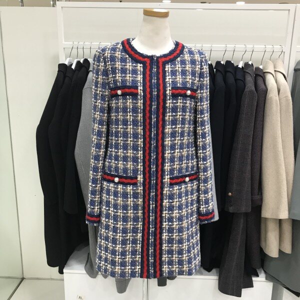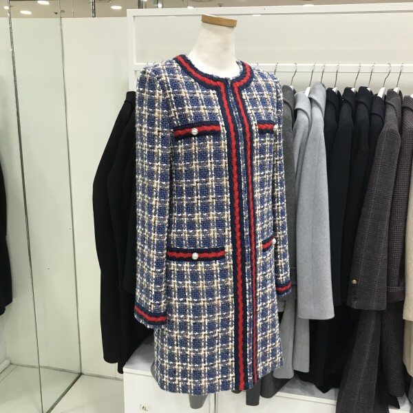 배색 테잎장식 슬림 롱 트위드 자켓입니다일자 핏으로 똑 떨어지는 핏감으로 고급스러우면서 여성스러움 느낌을 자아내는 트위드 자켓입니다원피스처럼 활용도 할 수 있는 디자인이랍니다(이너착용은 필수)진주 포인트로 우아하게 연출된답니다청바지와 캐주얼하게도 연출하실 수 있답니다사이즈 55 기준가슴둘레 82cm엉덩이둘레 90cm신장 160cm총장 81cm