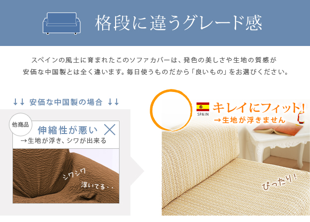 ●商品について:ジャガード織りの高級感あるスペイン製のソファカバー。横方向のストレッチで高いフィット感。不思議なジグザグ模様はスペインならではのデザインです。