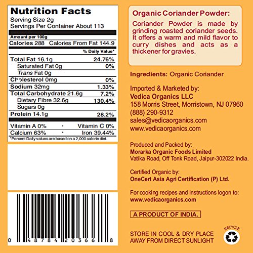 - Organic coriander powder has a dense phytonutrient profile which provides beneficial anti-oxidants and antibacterial components.