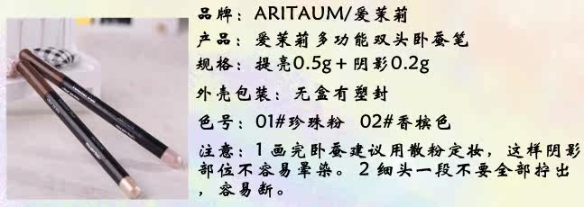 ★ 02# 香槟色+棕色:偏米白色的卧蚕笔,也可充当眼影棒,相对1#比较自然。