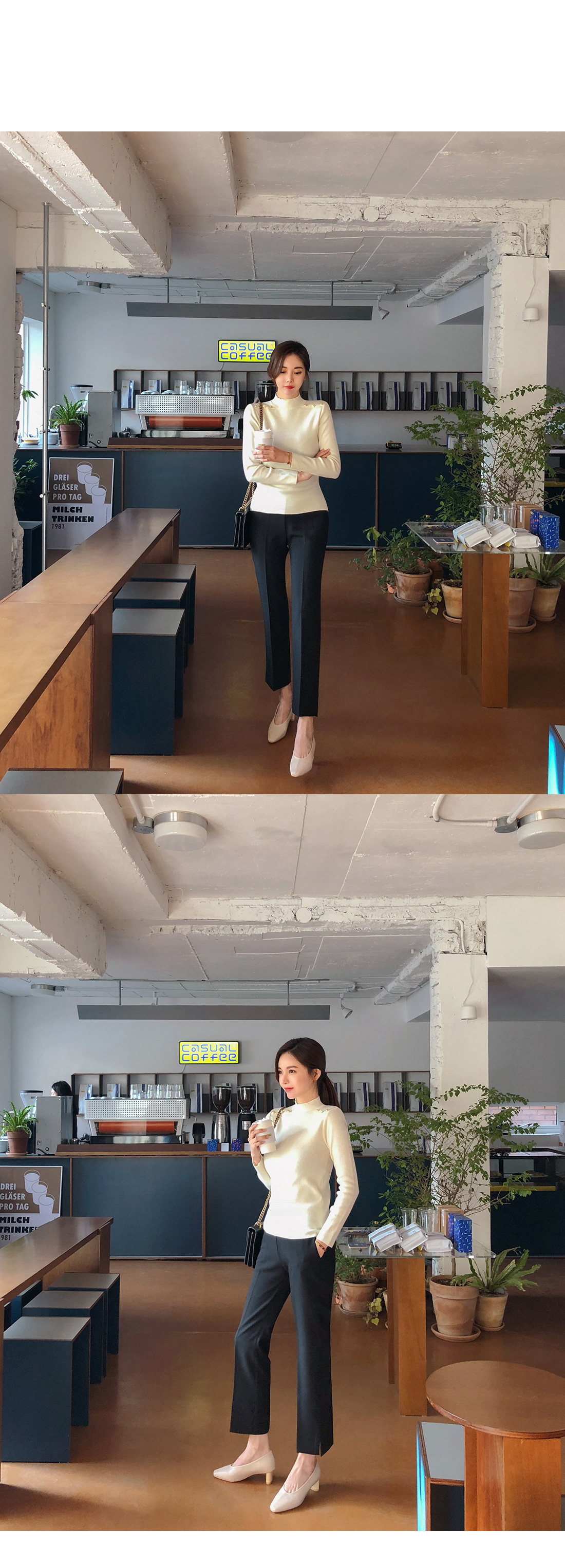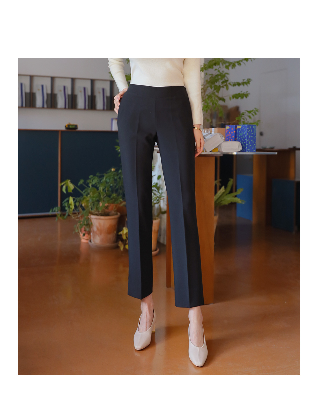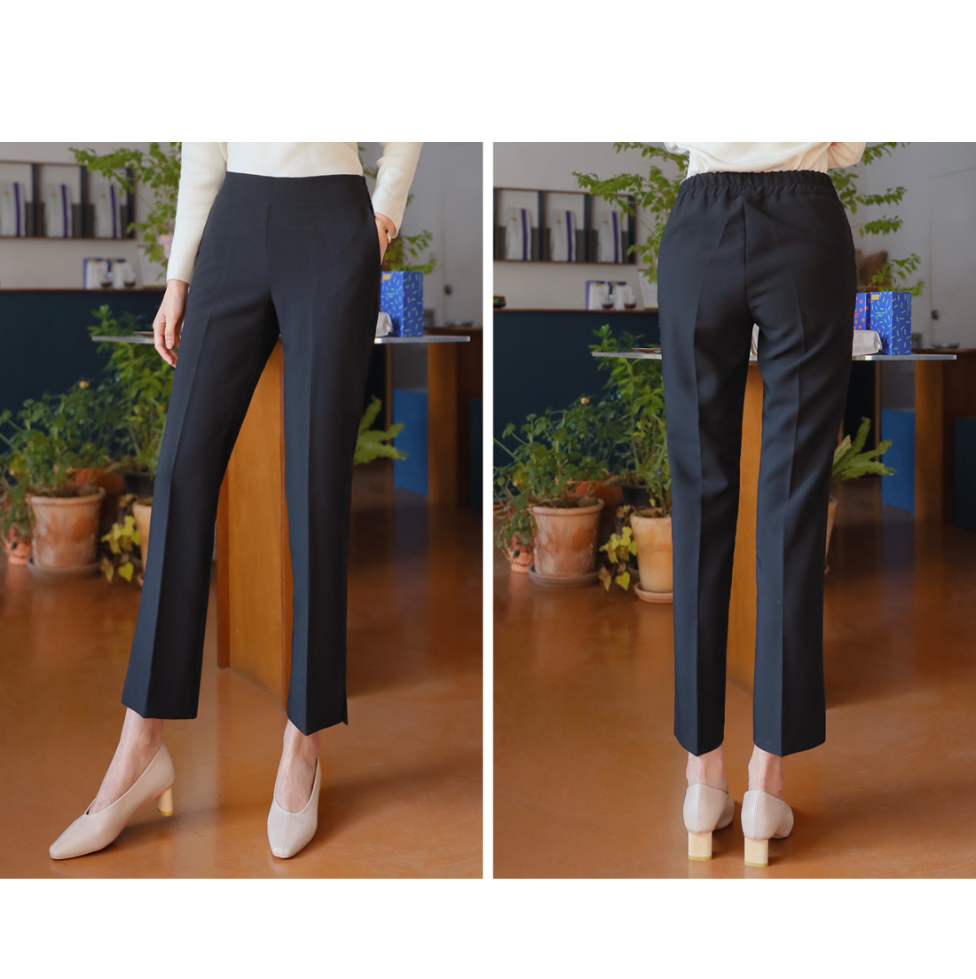 MD COMMENT 군더더기 없이 깔끔한 실루엣을 보여주는 밴딩슬랙스를 소개해드릴게요-허리 뒷밴딩으로 더욱 편안한 착용을 도와주면서장시간 착용에도 불편함이 없구요 깔끔하게 떨어지는 라인이 고급스러운 느낌을 살려주는 디자인이에요-밑단의 옆트임이 포인트를 주면서 더욱 슬림한 옆라인을 완성시켜주구요포켓으로 실용성을 높여주면서베이직한 디자인에 편안한 착용감으로자꾸 손이 갈 데일리아이템이랍니다-캐주얼하게도 입기 좋은 상품으로 니트나 맨투맨과 함께 코디가능한 상품으로 추천드려요-!COLOR/SIZE 블랙,베이지S,M,LMODEL FITTING 블랙/S