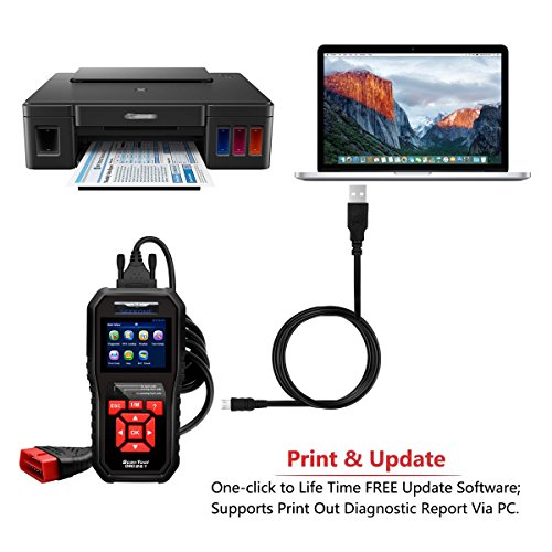 Read engine fault codes and shows definitions. Read and clear DTCs Read data stream Turn off MIL and reset monitors Graphs data(1996 and newer) View freeze frame data I/M readiness monitor status Troubleshooter code tips guide Display O2 sensor test data Read vehicle information(VIN,CIN,CVN) DTC lookup Test data review Print data via PC Battery check Internet upgradable Bright color 2.8' LCD Display with speaker Extra long 5.5 ft Cable. Lifetime Free update software