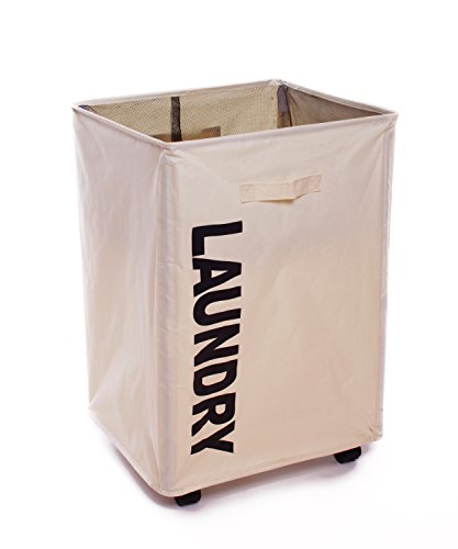 Laundry Hamper Folding with Wheels Large Hamper Basket with Handles Waterproof Custom Closet Bin Oxford 23-in.,Beige