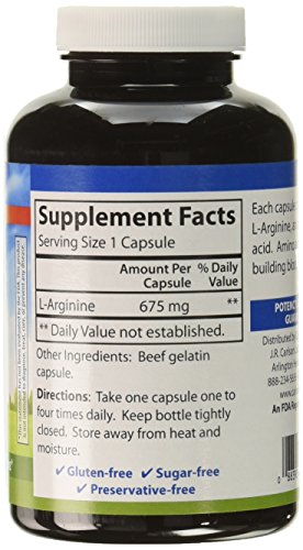 L-Arginine is 1 of 20 amino acids, the building blocks of protein. It's also important for forming nitric oxide, which is necessary for the healthy dilation of blood vessels, circulation, and blood flow. Each capsule contains 675 mg of L-Arginine.Feature