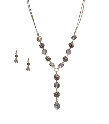 This exquisite matching necklace and earring jewelry set is constructed with captivating gray colored crystals, beads and tassel accents in distinct geometric shapes creating a design that is both sophisticated and unique. From our designer collection created exclusively for the particular woman who exudes her passion, creativity and love for fashion in every piece she wears, this necklace and earring set you apart from the crowd.